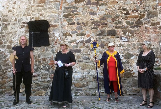 Gemeinsam mit der Bürgermeisterin Marlies Cassuhn enthüllten Museumsmitarbeiter Heike Bastian, Jörg Bonewitz und Anette Pilz unter Anwesenheit des…